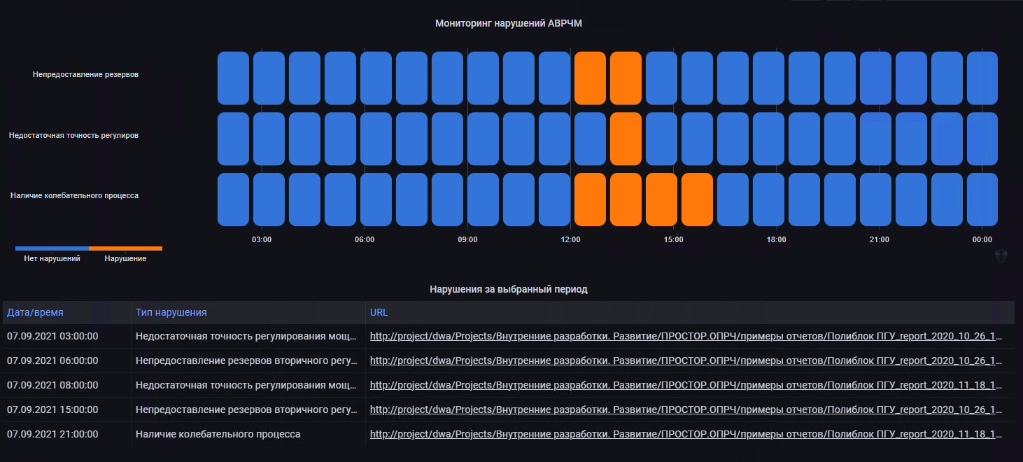 Рисунок 3. Пример сводного экрана с мониторингом нарушений при участии в АВРЧМ.