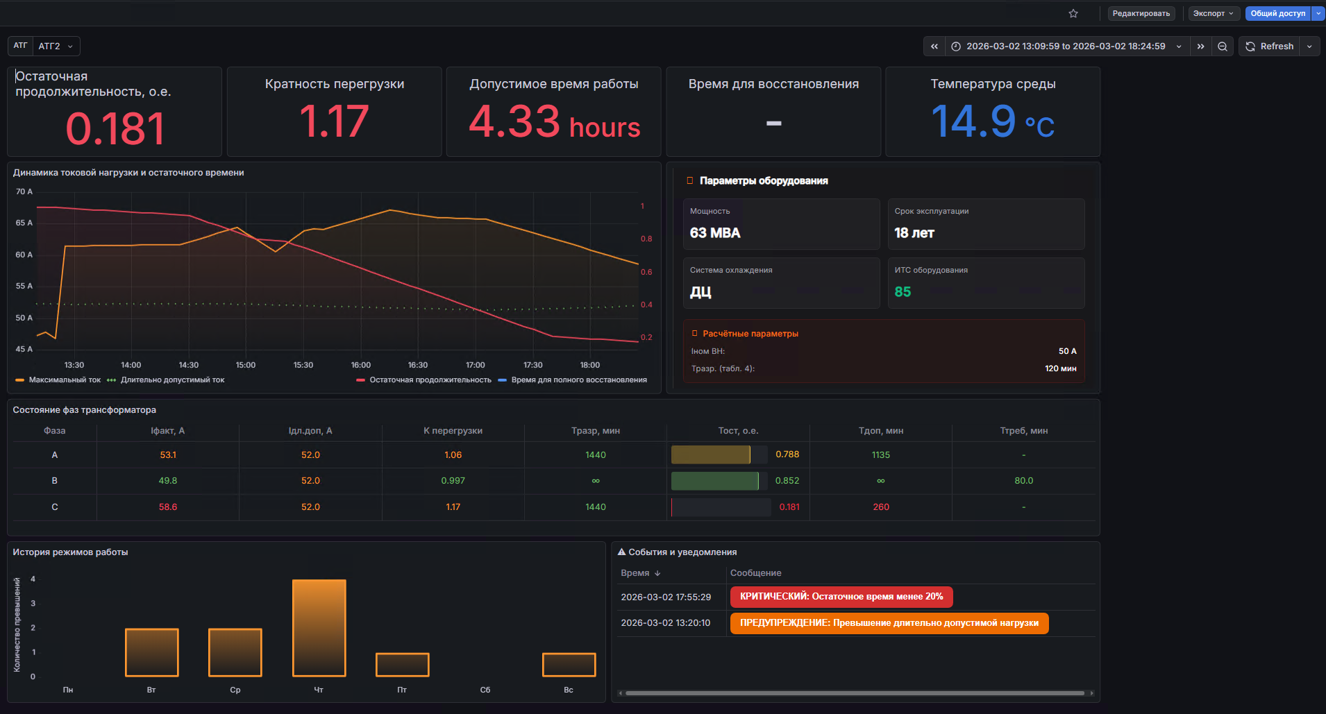 Рисунок 3. Оперативный мониторинг ответственных параметров на уровне станции