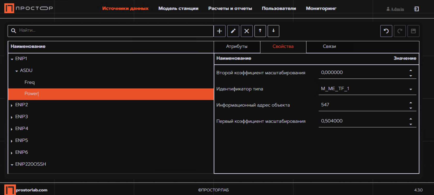 Рисунок 2. Настройка информационного обмена. Пример для инф.объектов МЭК 61870-5-104.
