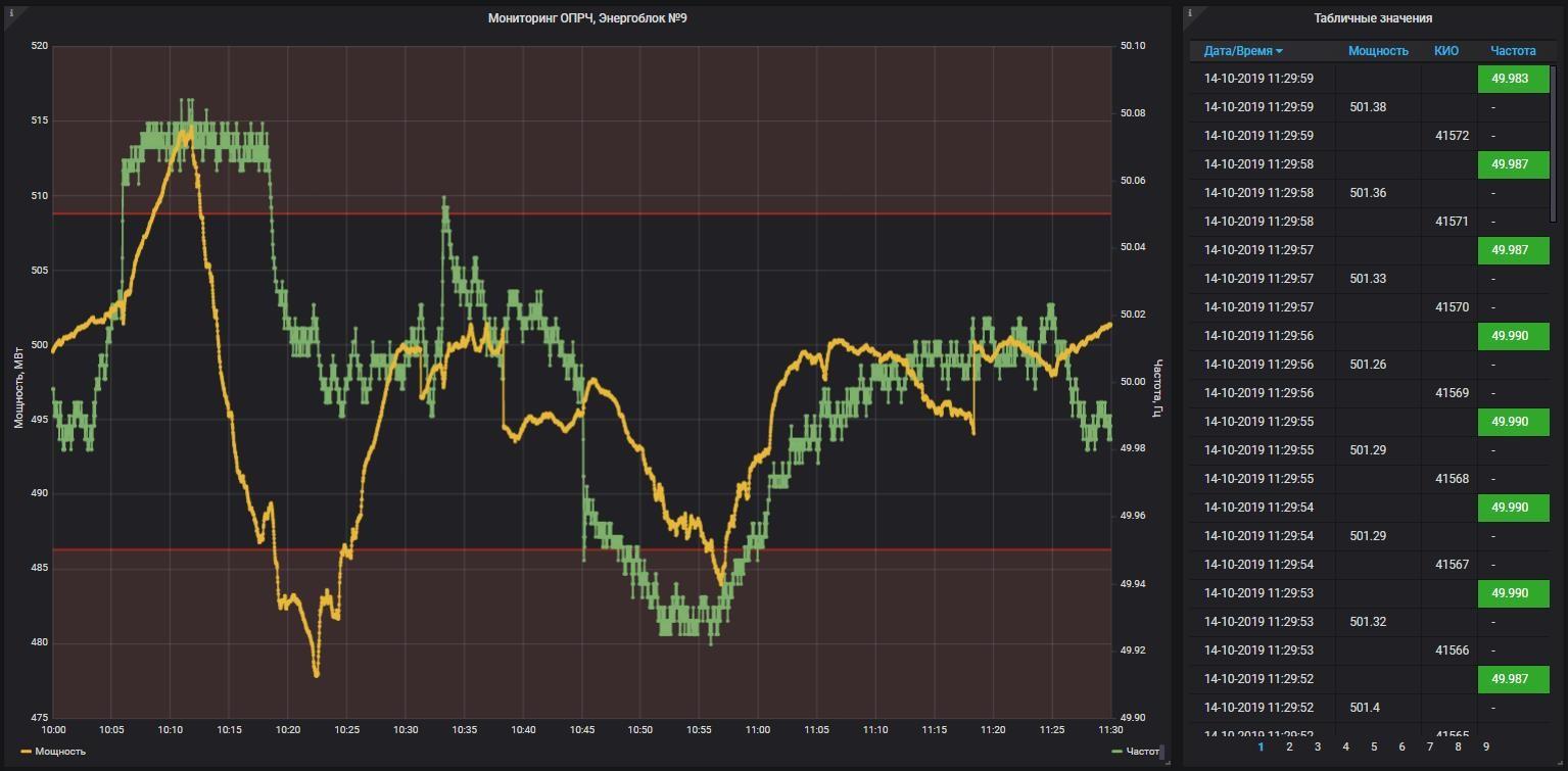 Рисунок 3. Просмотр архивных данных мониторинга ОПРЧ