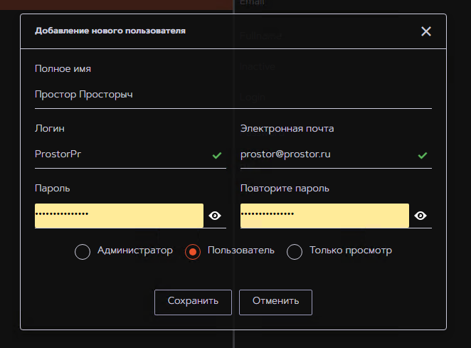 В платформе ПРОСТОР реализована система управления пользователями, в базовый функционал которой входит разграничение прав доступа к функциям платформы в соответствии с тремя ролями:
